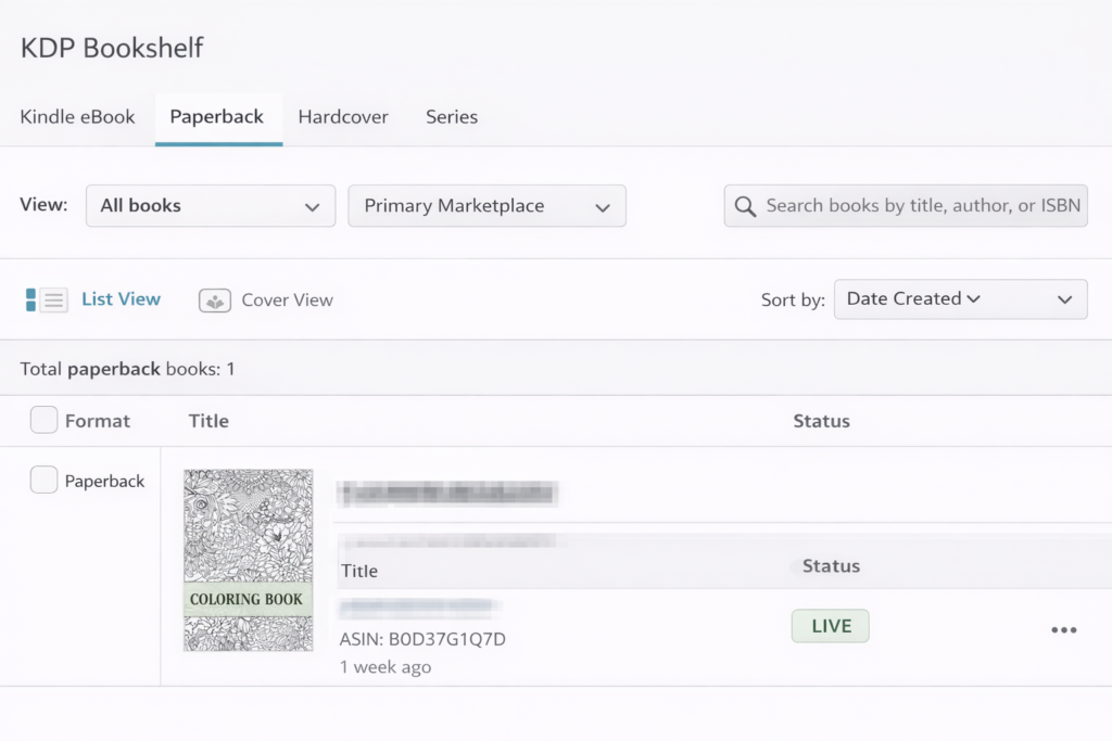 Coloring book published and live on Amazon. Interior assets unchanged after generation.